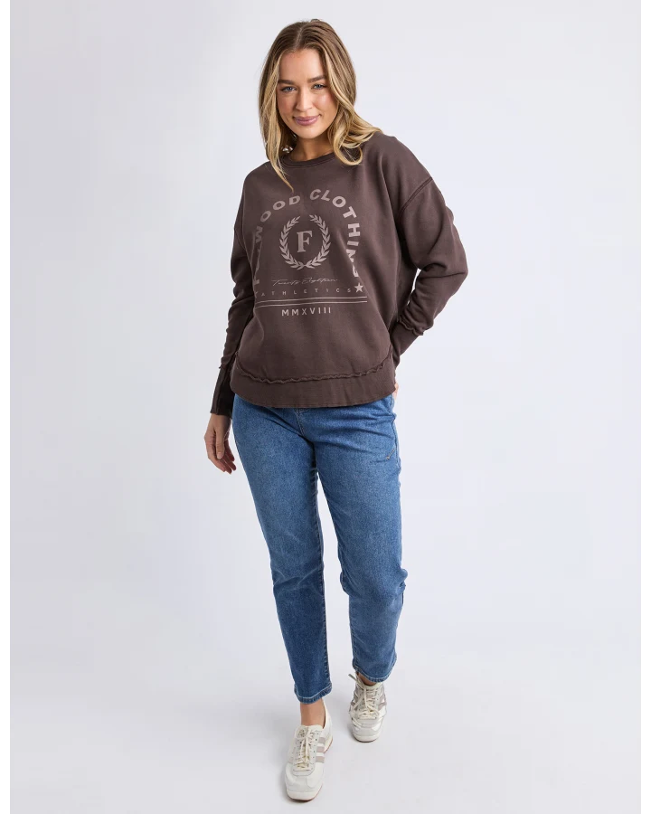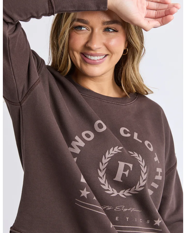 Set to win all the medals this best selling shape from Foxwood has had a sporty LeisureFit makeover. Featuring a tonal chest graphic and raw edge detail, this vintage washed crew is an everyday award winner!