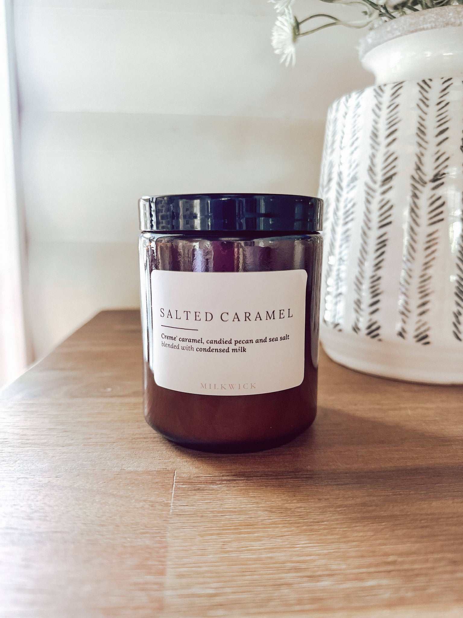 Creme' caramel, candied pecan and sea salt blended with condensed milk. - Natural Soy wax - Premium fragrance oils - Made in Melbourne Burn time: Large = approx. 40 hours Extra Large = approx. 80 hours